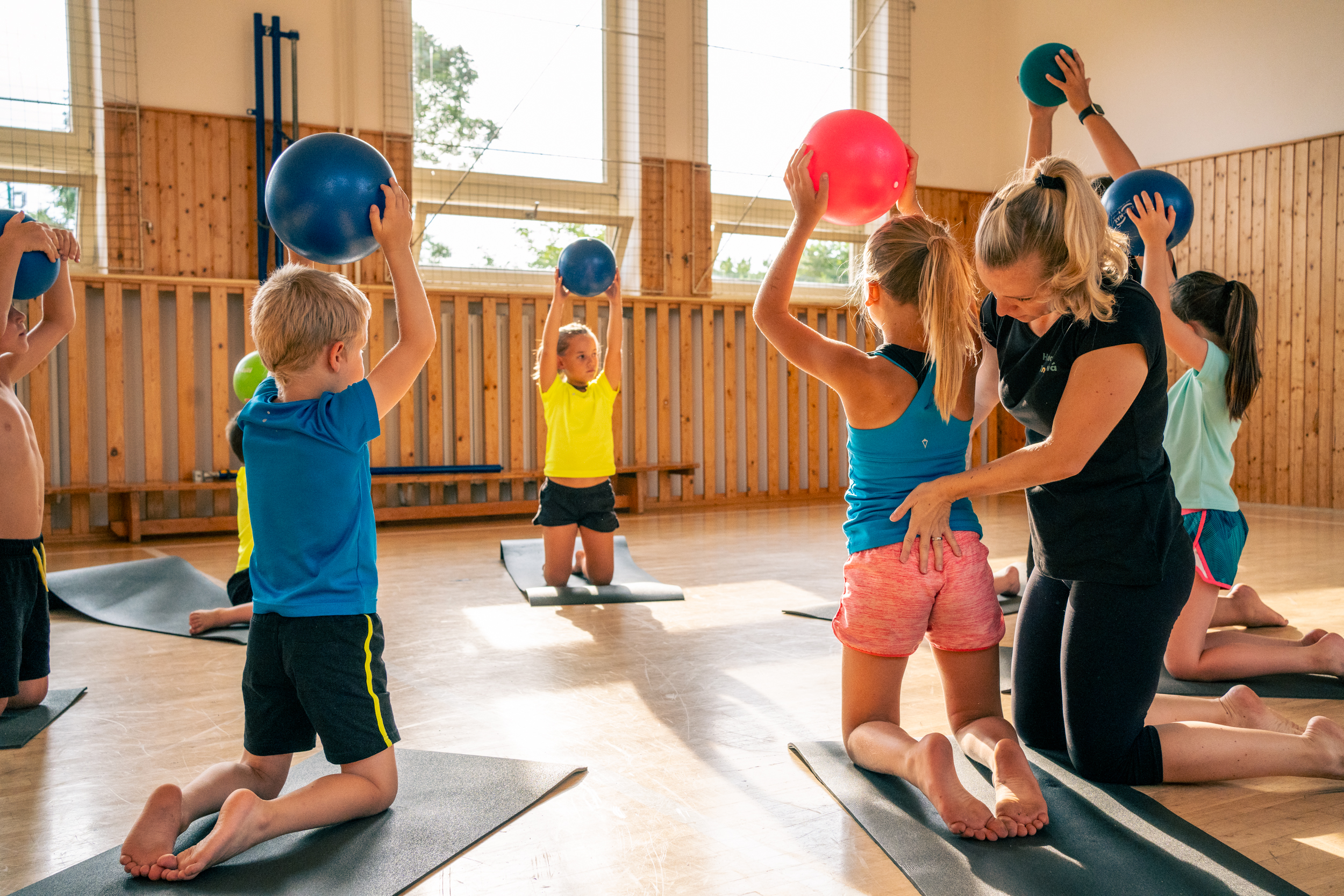 Then I went to watch my own children at their Sokol class. I was thrilled by how the session was led — the children were enthusiastic, moving, sweaty, and all of them looked genuinely happy. During one of the games, each child must have done about 50 squats, which is fantastic, but my “physio eyes” were suffering from the quality of execution in probably three quarters of them. I kept thinking: why doesn’t someone simply explain to them that a squat can be done differently — better, in a way that protects the joints and doesn’t overload the same already overactive muscles? And that was the final confirmation I needed to fully commit to FySport — to combine physiotherapy, movement, games, and education. That’s how the first program, “Straighten Up With Us,” was created.